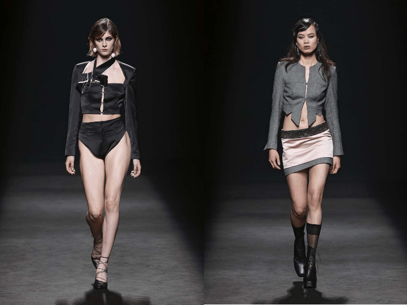 Esta colección experimenta con los límites de la sensualidad y la feminidad, con cortes atrevidos y tejidos delicados como satenes, encajes, gasas… en contraste con lanas sastre y falsos cueros en trajes y abrigos dandy. Estos diseños buscan jugar con el lujo y la opulencia y su descomposición, mostrando la construcción de las prendas y su deconstrucción limitada.