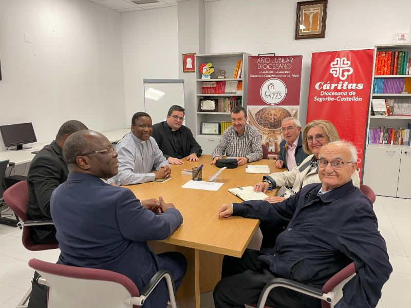 Mons. Prosper Ky aprovechó la visita a nuestra Cáritas para mantener un encuentro con el Delegado Episcopal en Cáritas Diocesana, D. Sergio J. Mendoza, y con el Director, D. Francisco Mir; así como con la Presidenta-Delegada de Manos Unidas de Segorbe-Castellón, Dña. Amparo Faulí. Al encuentro también asistió el Delegado para las Misiones, D. Salvador Prades, y los sacerdotes diocesanos D. Juan Antonio Albiol y D. Eduardo García, que fundaron una parroquia en la población burkinabé de Oury.