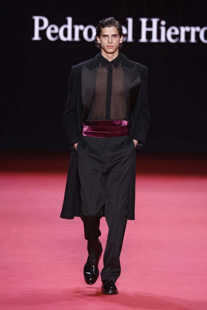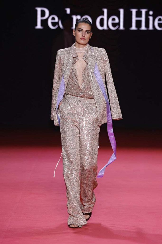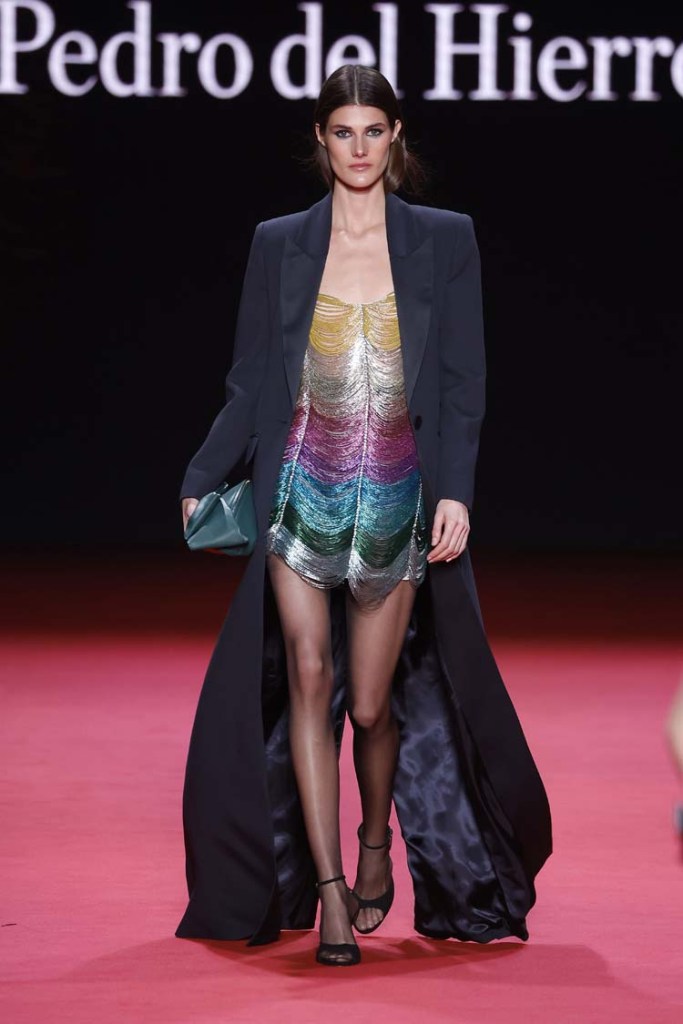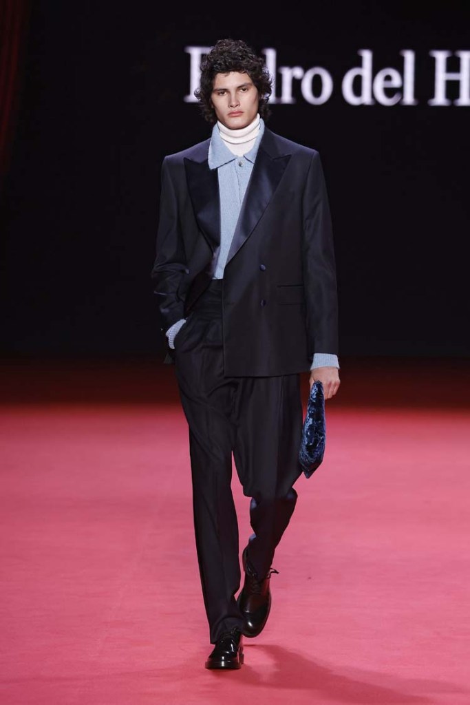 La nueva colección de la firma apuesta por reinventar los elementos esenciales que componen los desfiles; colección, música y puesta en escena. En la pasarela, los modelos se convierten en protagonistas con una puesta en escena que representa la llegada de invitados a la ópera, creando una composición de personas que da variedad a la hora de presentar tendencias, volúmenes y siluetas para la temporada Otoño-Invierno 23/24 de Pedro del Hierro.