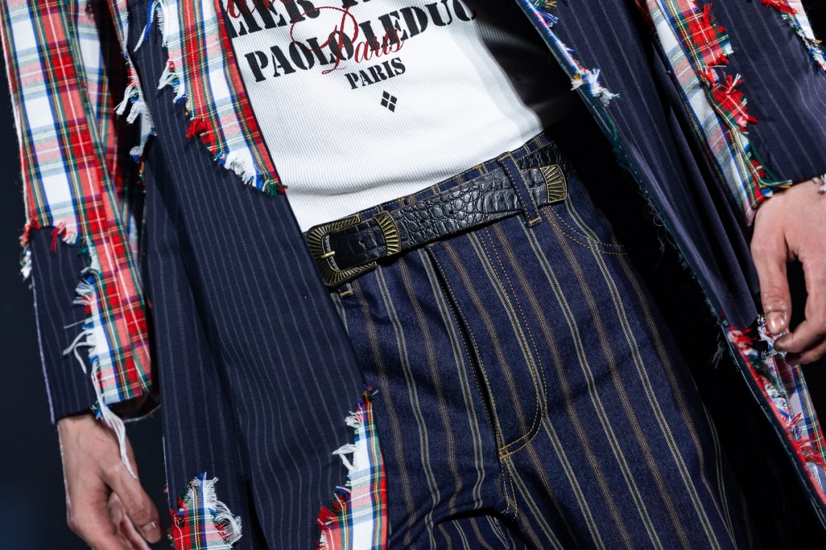 La sastrería como pilar de la marca y punto de partida para crear, distorsionando las siluetas humanas y las formas clásicas de la sastrería, con deconstrucción de prendas, el uso de estampación digital con la técnica del “trompe l’oeil” y manipulación de tejidos.