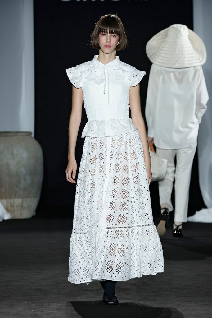 Algodones bordados como reminiscencias de mantelerías secándose al sol mecidas por la brisa, prendas enteramente realizadas con artesanías de macramé para vestidos o en apliques que se combinan con otros materiales. Tweeds de colores frescos y texturas cálidas que nos transportan a las ricas tapicerías utilizadas en piezas de mobiliario de las casas de campo para el verano. Jacquards que dibujan en relieve líneas que se entrecruzan y recuerdan a los blancos cubrecamas estivales con los que cubrirse al llegar la madrugada. Guipures geométricos que imitan las baldosas hidráulicas utilizadas en terrazas y patios protegidos del calor. Capítulos de vida que nos hablan de quienes somos y nos acercan mas a las personas con las que crecimos despreocupados bajo su atenta mirada.