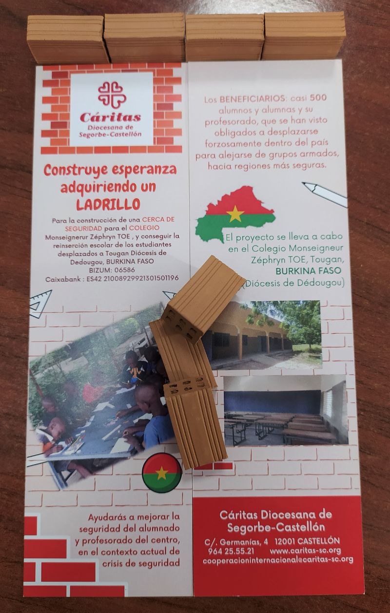 Cáritas Diocesana de Segorbe-Castellón impulsa la campaña “Construye esperanza, compra un ladrillo” para recaudar fondos para la construcción de una cerca de protección para un centro escolar de Burkina-Faso, al que se han desplazado unos 500 alumnos y sus profesores que se han visto obligados a dejar su residencia habitual por la inseguridad que se vive en este país africano.