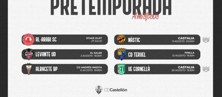 Por lo tanto el calendario de la pretemporada del CD Castellón quedará así: