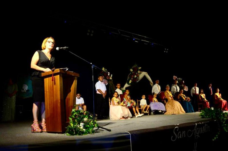 La concejala de Fiestas del Ayuntamiento de Castellón, Noelia Selma, ha ejercido de mantenedora de las Reinas Ohiane y Vega, de sus damas y acompañantes de las Fiestas del grupo San Agustín y San Marcos.