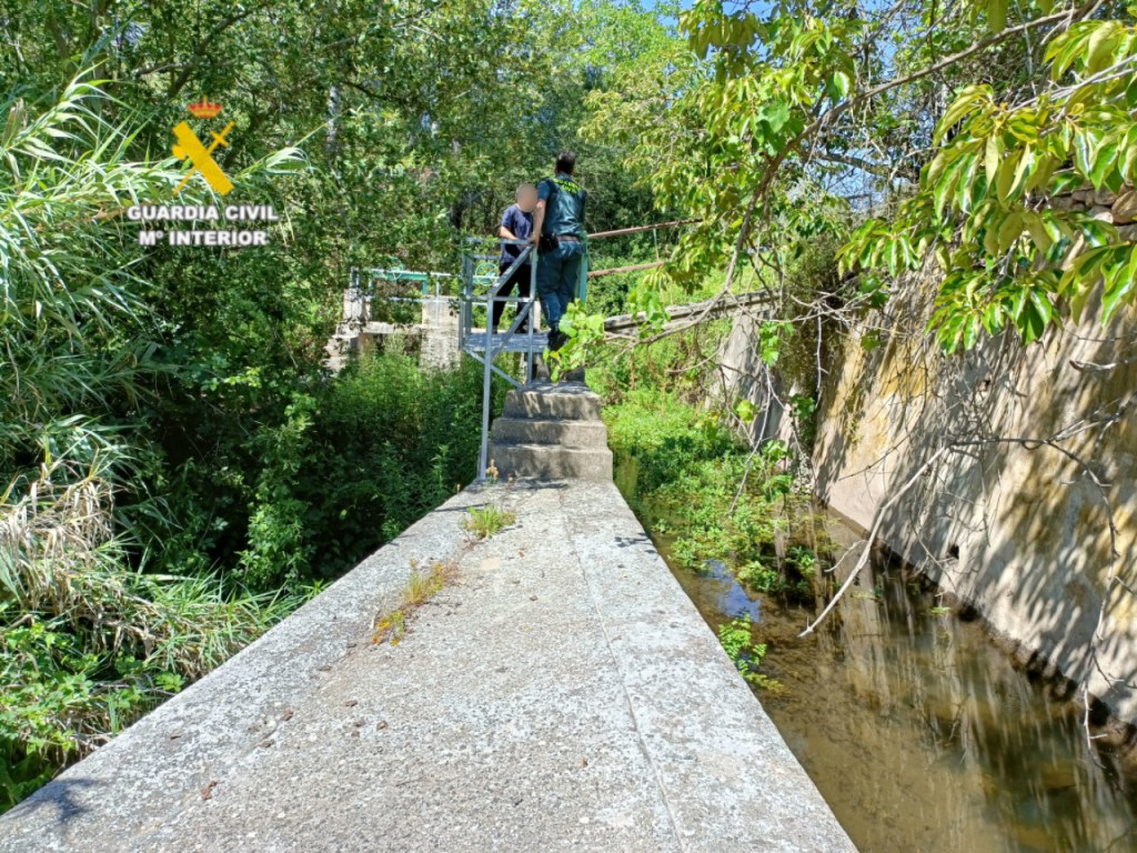 Cuando los agentes siguieron el cauce río arriba encontraron un azud (muro generalmente más pequeño que una presa, construido para reconducir el agua) que dirigía la totalidad del caudal del río hacia una acequia de riego.