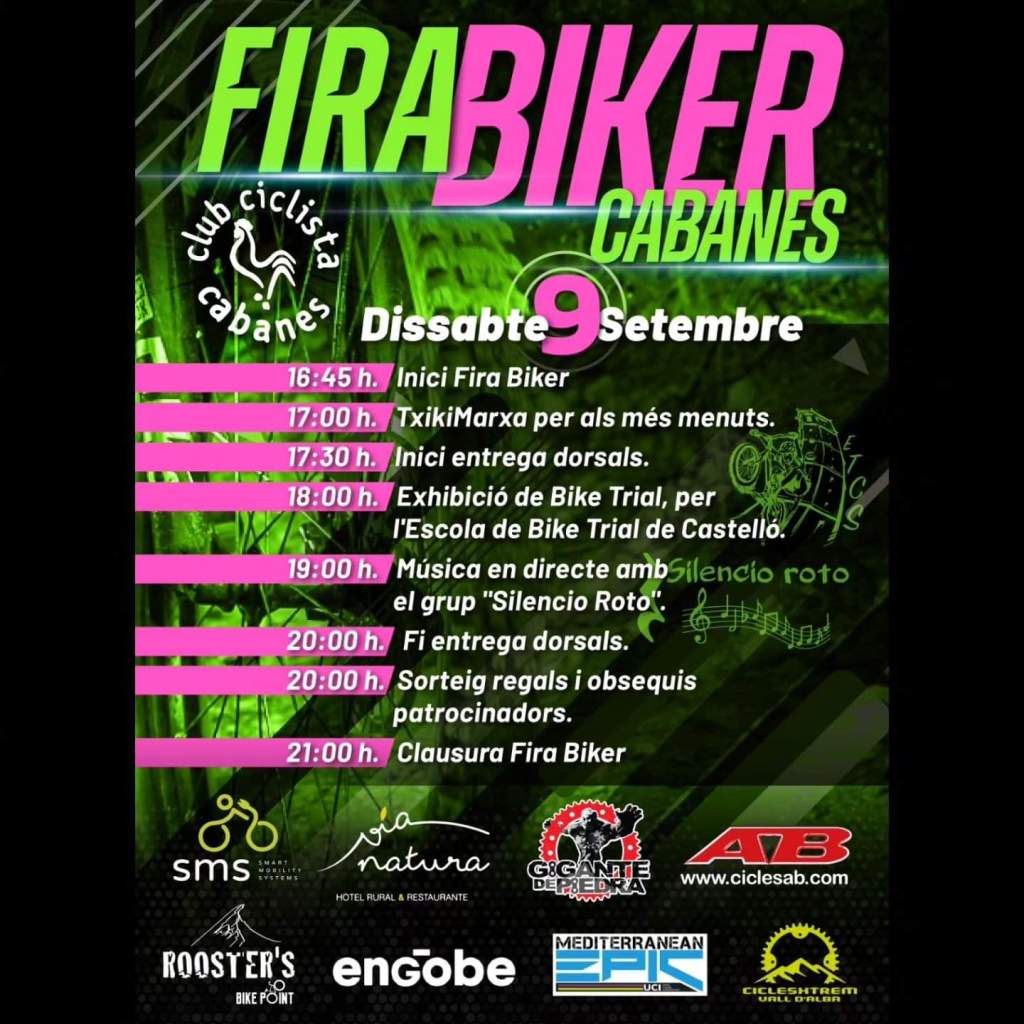 El sábado día 9, se abrirá la Feria Biker por la tarde con la TxikiMarxa, para que puedan disfrutar los más pequeños. A las 18 h, se hará una exhibición de Bike Trial a cargo de la Escuela de Castelló. Al acabar, ‘Silencio Roto’ amenizará con su música la tarde. Y para finalizar, se sortearán regalos y obsequios de los patrocinadores del fin de semana.
