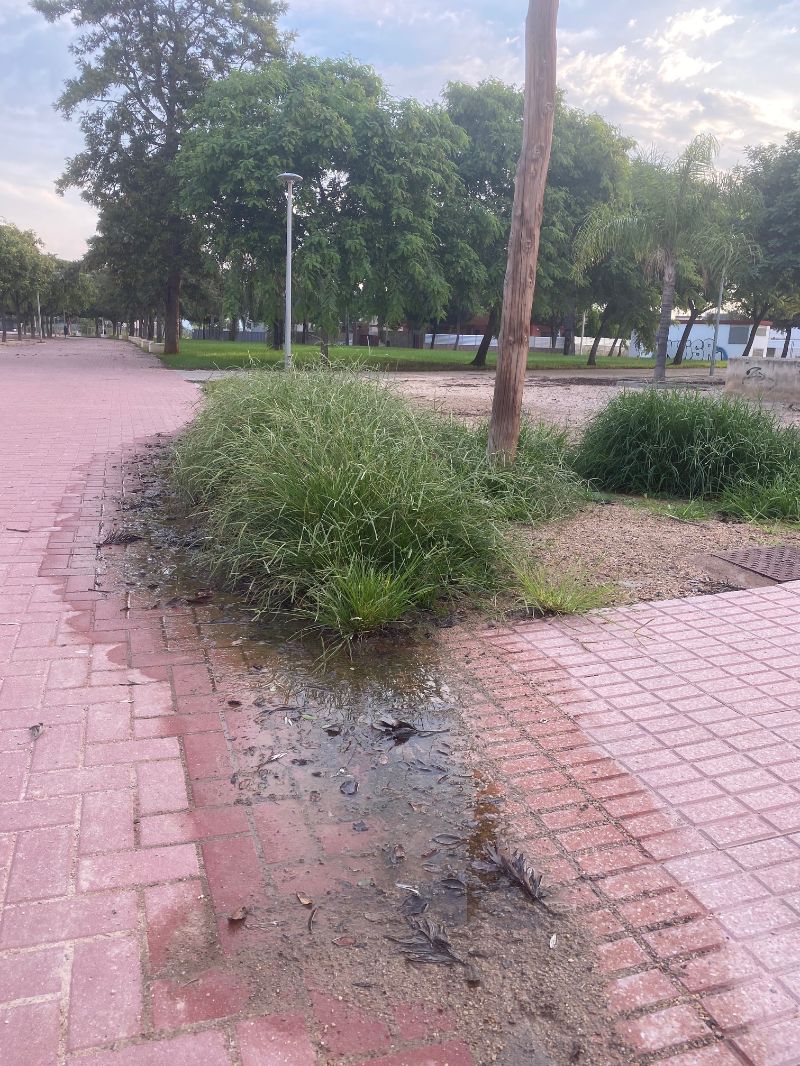 La fuga de agua ha generado una degradación muy importante del entorno, con crecimiento de vegetación incontrolada en un espacio de graba además del encharcamiento permanente de agua en más de 40 metros cuadrados. “La situación afecta a los vecinos de la zona, que padecen la proliferación de mosquitos y la degradación de un espacio que debería ser de paseo y ocio y por el que no se puede circular en estos momentos”.