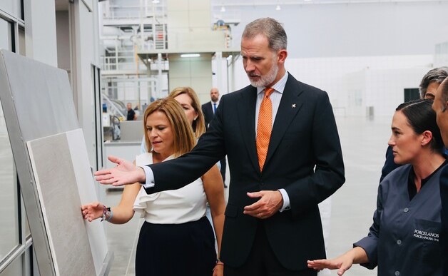 Don Felipe ha visitado, en Vila-real, las instalaciones de Porcelanosa Grupo, en el marco de la celebración del 50 aniversario de la compañía, referente en el mercado nacional e internacional y asentada sobre valores como la innovación, la sostenibilidad, la creatividad y la calidad con un equipo formado por casi 5000 personas. Don Felipe pudo conocer la labor y el proceso de fabricación cerámica de Porcelanosa.