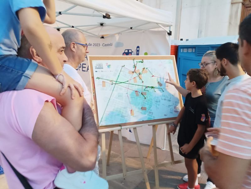 Castellón ha acogido este viernes, como novedad, un ‘Mapeo participativo’ dentro de la programación por la Semana Europea de la Movilidad Sostenible, que organiza la concejalía de Movilidad. Esta actividad ha atraído a numerosos participantes hasta la plaza Mayor. Se trata de un proceso colaborativo que requiere de la participación ciudadana para crear un mapa físico, en este caso sobre un panel de grandes dimensiones, que refleja la facilidad de accesibilidad y el tiempo requerido para caminar entre dos puntos muy frecuentados dentro de la ciudad y en el perímetro de la Zona de Bajas Emisiones (ZBE).