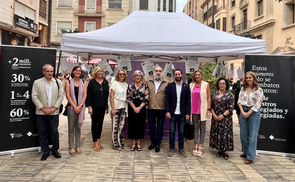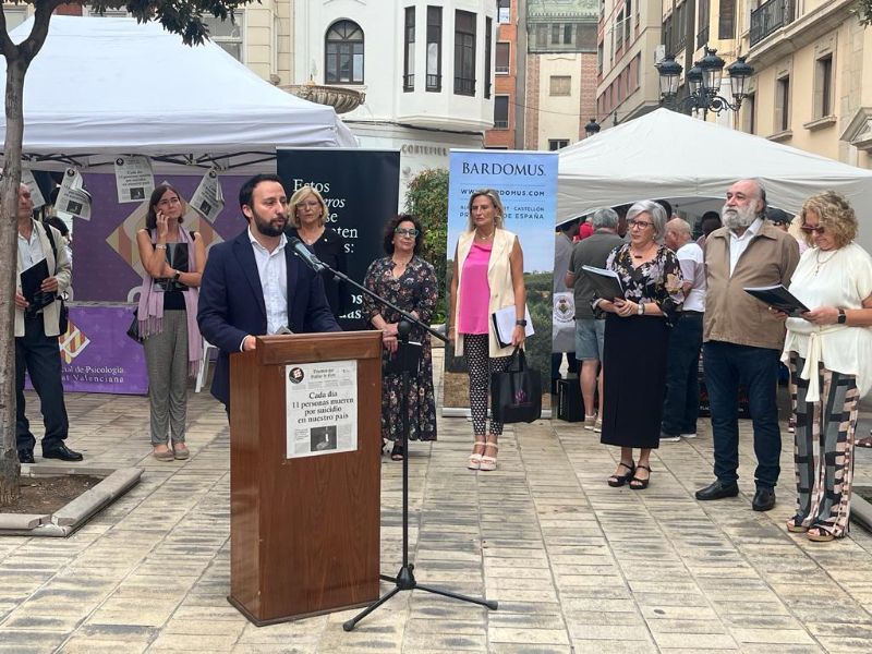 Un gesto que se complementa con el acto realizado hoy, 14 de octubre, en la plaza de la Pescadería y que ha contado con la presencia de representantes de la vida social, profesional y política de la provincia. De 10:30h. a 13:00h. se ha instalado una caseta a la que han podido acercarse vecinos y vecinas para realizar todas aquellas consultas relacionadas con la salud mental, el intrusismo profesional y la colegiación. Vicenta Esteve, secretaria del COPCV, ha sido la encargada de conducir el acto y dar paso a las personas que han ido participando en su desarrollo.