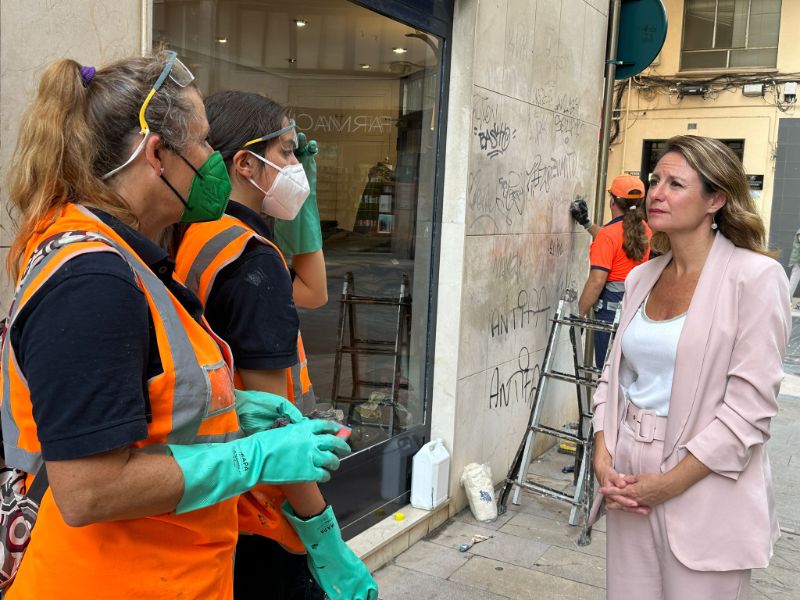 La alcaldesa de Castellón, Begoña Carrasco, ha destacado que “nos comprometimos a mejorar la imagen de la ciudad en materia de limpieza y en eso estamos trabajando, por eso hemos ampliado de seis meses a un año los contratos de los trabajadores del programa de empleo municipal, del que salen estas brigadas antipintadas que están a pleno funcionamiento desde el pasado mes”.
