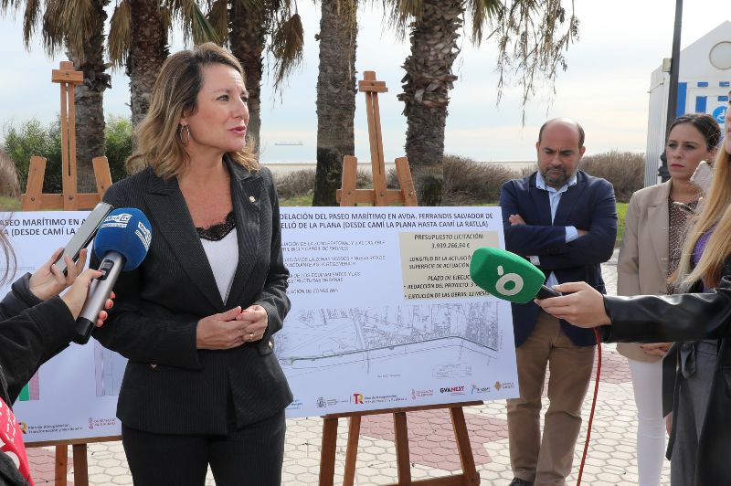 “La nueva avenida Ferrandis Salvador será el mejor escaparate turístico de la ciudad”. Así lo ha anunciado la alcaldesa, Begoña Carrasco en la presentación de la actuación, cuyo expediente de contratación tanto del proyecto como de las obras pasará mañana mismo por la Junta de Gobierno Local. Se trata de una intervención valorada en 4 millones de euros y cofinanciada con los fondos Next Generation de la Unión Europea en el marco del Plan de Recuperación, Transformación y Resiliencia con cargo a la convocatoria extraordinaria de 2022 del Programa de Planes de Sostenibilidad Turística. En este acto también han estado presentes el portavoz adjunto del gobierno, Antonio Ortolá; el edil de Servicios Públicos, Sergio Toledo; la edil de Turismo, Arantxa Miralles y la teniente de alcalde del Grao, Ester Giner.