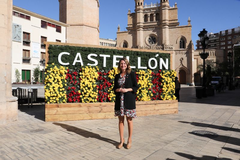 La plaza Mayor de Castellón luce nueva imagen con el tapiz floral que lleva el nombre de la ciudad en las dos lenguas oficiales, castellano y valenciano, respetando la doble cooficialidad. Se trata del mural que el Ayuntamiento instaló en el parque Ribalta con motivo de la gala autonómica de Viles en Flor celebrada el pasado mes y que va a mejorar la estética de la plaza.