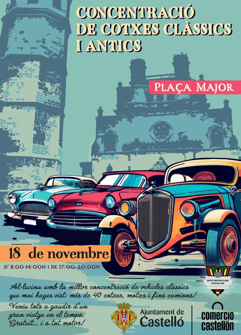 Más de 40 coches, motos e incluso camiones clásicos se darán cita este sábado en la Plaza Mayor de Castellón en una oportunidad única para conocer de primera mano la historia del automovilismo. Organizada por la concejalía de Comercio y Consumo con la colaboración con Antic Motor Club Castellón, la exposición estará abierta al público de 11:00 horas a 14:00 horas y de 17:00 horas a 20:00 horas.