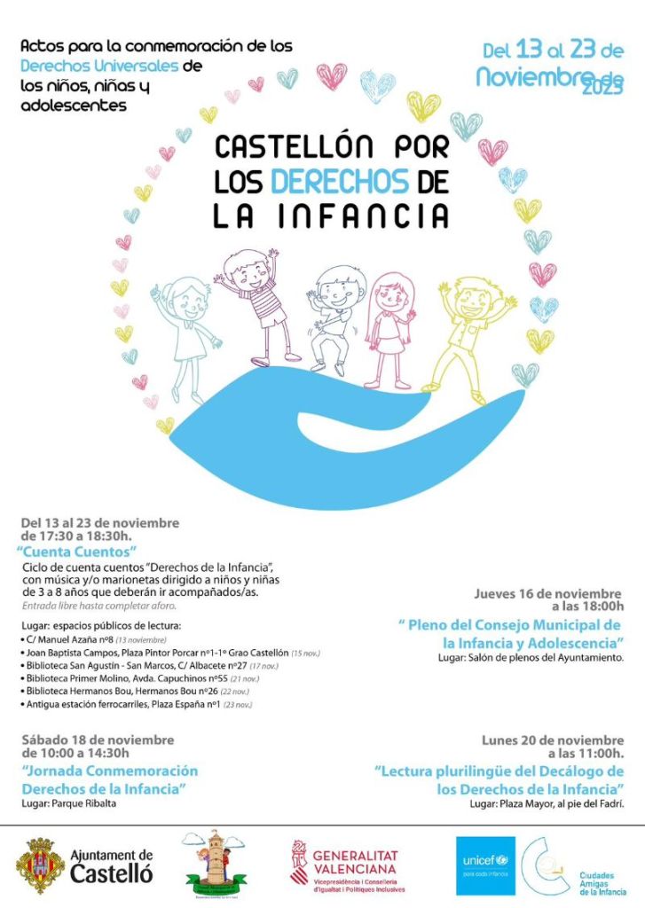 También el sábado tendrán lugar las Jornadas de los Derechos de la Infancia en el Parque Ribalta. De 10:00 horas a 14:00 horas habrá una feria de entidades que en su día a día trabajan con temáticas relacionadas con infancia y adolescencia, con 15 stands que darán a conocer los derechos de los niños de una manera participativa. Cada entidad trabajará un derecho mediante talleres y actividades diversas de sensibilización para un público infantil y adolescente.