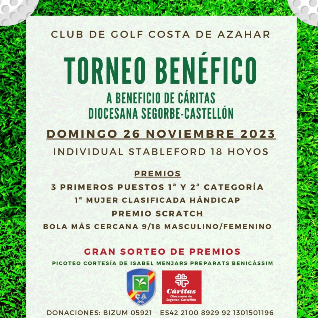 El Club de Golf Costa de Azahar, en el Grau de Castelló, acogerá este domingo, 26 de noviembre, la tercera edición del Torneo Solidario de Golf a beneficio de Cáritas Diocesana de Segorbe -Castellón.