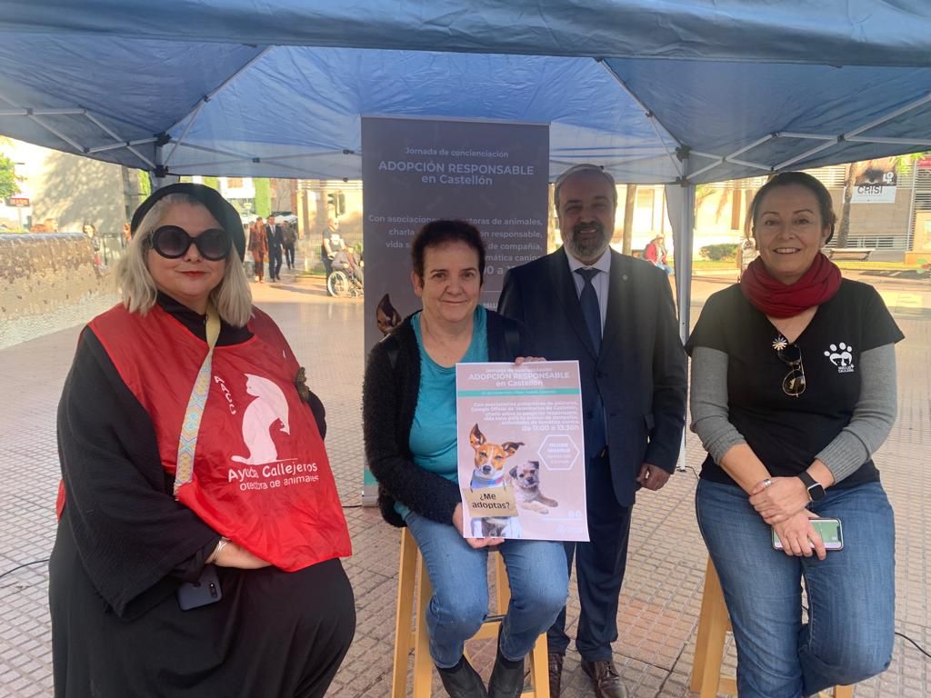 Este sábado se ha celebrado la jornada de Adopción Responsable, que se encuentra enmarcada en la campaña de concienciación sobre la tenencia responsable de animales promovida por el Ayuntamiento de Castellón. El acto ha tenido lugar en la plaza Fadrell, y ha contado con la presencia de asociaciones protectoras de animales como Huellas Callejeras, AACC Ayuda Callejeros, ASPAC o el Colegio de Veterinarios de Castellón. En este contexto, se han celebrado una serie de mesas redondas en las que han participado las diferentes asociaciones, y que han contado con la colaboración de Herminia González-Albo, vicepresidenta de COVS.