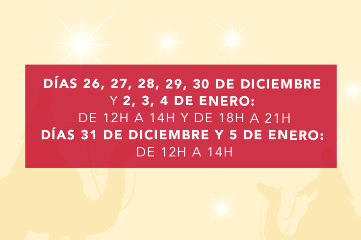 ¿Quieres vivir la verdadera magia de la Navidad? En Salera queremos que te sientas como en casa y que encuentres todo lo que necesitas para hacer tus deseos realidad. ¡No te lo pierdas! Después de la visita de Papá Noel llegado directamente desde el Polo Norte, ahora es el turno del Rey Mago y su Paje Real con quienes podrás disfrutar de un encuentro muy especial. ¡Echa un vistazo a los horarios y ven a vivir la mejor Navidad a Salera!