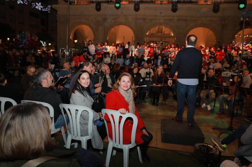 La alcaldesa de la ciudad, Begoña Carrasco acompañada de la concejala de cultura y educación, María España han disfrutado de los acordes del repertorio marcado por los villancicos más conocidos como “Blanca Navidad”, “Campana sobre campana”, “Noche de paz” o “A Betlem me’n vull anar”.Este evento tan emblemático, que ha vuelto a celebrarse después de varios años como una de las premisas que este gobierno se había marcado para Navidad, ha contado con la gran acogida de los castellonenses.