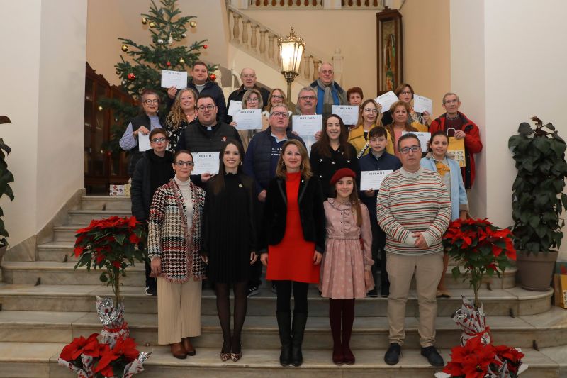 La alcaldesa Begoña Carrasco, junto a los concejales de Fiestas, Noelia Selma, y de Participación Ciudadana, Paco Cabañero y las Reinas de las Fiestas Lourdes Climent y Vega Torrejón, ha hecho entrega en el salón de plenos del consistorio de los premios de la XXIII Edición del Concurso de Belenes que se ha celebrado estas Navidades tras varios años sin convocarse. El certamen ha tenido muy buena acogida, con una veintena de participantes de toda la ciudad.