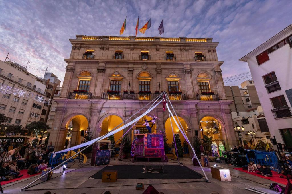 La novena edición del festival “Nadal de Circ” ha sido la más multitudinaria de su historia, con más de 3.500 espectadores en la Plaza Mayor. La fachada del Ayuntamiento de Castellón se ha convertido en la carpa de un circo en la que, en doble función matinal y vespertina, niños y mayores han podido disfrutar de una programación de primer nivel. Las compañías El Gran Dimitri (The Legend), La Troupe Malabó (Karpaty), Alas Circo y Proyecto Kavauri (Lullaby), han protagonizado cuatro espectáculos con entrada gratuita y en el que se instalaron más de 600 sillas para que grandes y pequeños pudiesen seguir las funciones.
