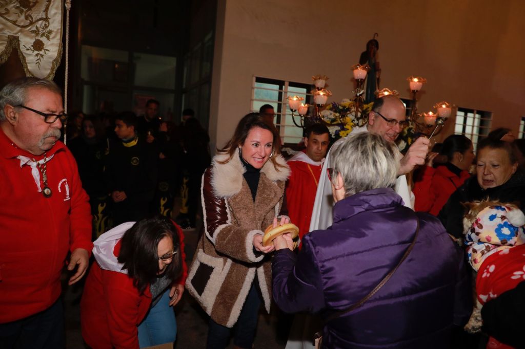 La alcaldesa ha acompañado a los vecinos del grupo Benadresa por la mañana en los actos por Sant Antoni y por la tarde se ha trasladado al grupo San Agustín y San Marcos para asistir a la tradicional bendición de animales, procesión, reparto de rollos y encendido de la hoguera con baile de dimonis.