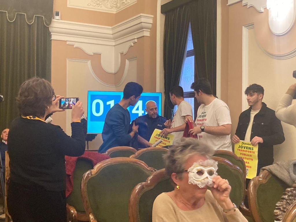 Afirman que la alcaldesa, según la Policía Local, mandó hasta seis agentes para echar del pleno a cinco jóvenes que reclamaban el bono bus gratuito