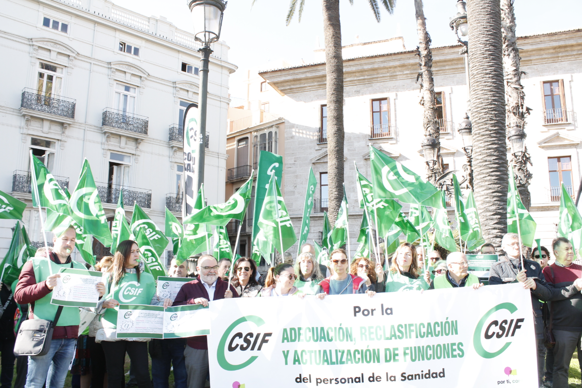 La Central Sindical Independiente y de Funcionarios (CSIF), sindicato más representativo en las administraciones públicas y con presencia creciente en el sector privado, ha llevado a cabo hoy miércoles, 21 de febrero, a las 11.00 horas, concentraciones delante de las delegaciones de Gobierno de toda España (en Valencia, ante la plaza del Temple) para denunciar la crítica situación en la que se encuentra nuestro Sistema Nacional de Salud (SNS).