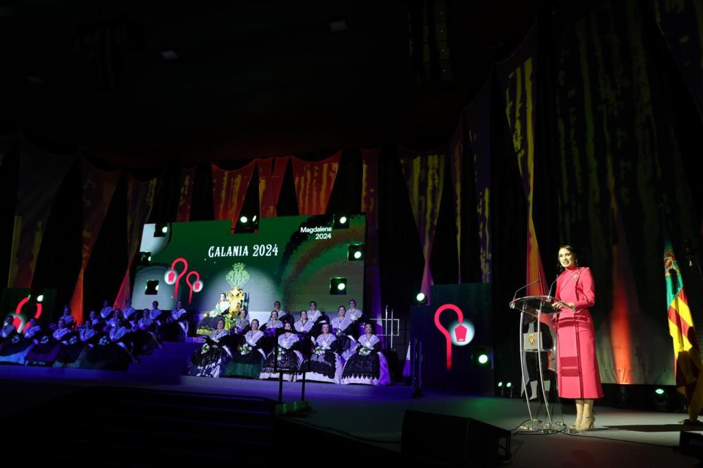 Tras las ofrendas florales ofrecidas por distintas entidades, la Galania inició su recta final con la despedida de la Corte de Honor de la Reina. Eso sí, el espectáculo culminó con una escena dedicada a la Mare de Dèu del Lledó, siempre presente en el los actos festivos y en el fervor de los festeros, aunque este año de un modo especial, puesto que celebraremos el centenario de su Coronación Pontificia y Canónica. A los sones de la música de Xarançaina, el coro Innuendo y la voz de Elena Sorlí, accedió al escenario en ese momento únicamente ocupado por la Reina de las Fiestas, la Imagen Peregrina de la Patrona de Castellón, portada por Sergio Renau, Perot de Granyana de 2016.