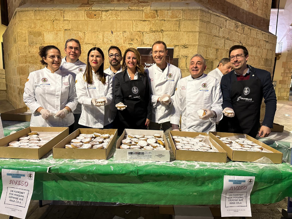 La alcaldesa, Begoña Carrasco, y el concejal de Comercio y Consumo, Alberto Vidal, han repartido de la mano del Gremi de Forners un total de 2.200 fradrinets. El reparto, inicialmente programado para el sábado pasado, fue pospuesto para el lunes debido al luto oficial por el incendio de Valencia. Este cambio de fecha coincidió con el acto de anuncio de los pregoneros de las fiestas de la Magdalena 2024, en una plaza Mayor abarrotada de gente.