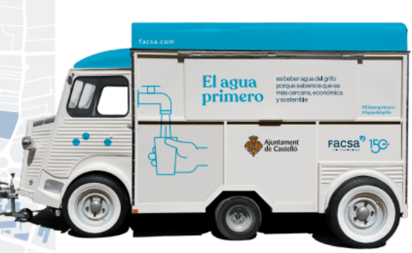Con el fin de acercar a la ciudadanía la calidad del agua de grifo y los beneficios de su consumo desde el punto de vista medioambiental y económico, el Ayuntamiento de Castellón y la empresa concesionaria del servicio, Facsa, desplegarán durante las próximas fiestas de la Magdalena una campaña dirigida a promocionar el agua de grifo mediante la disposición en vía pública de un puesto en forma de vehículo itinerante, Watertruck, que es capaz ofrecer agua natural, fría y con gas, desde su conexión a la red de distribución de agua potable.