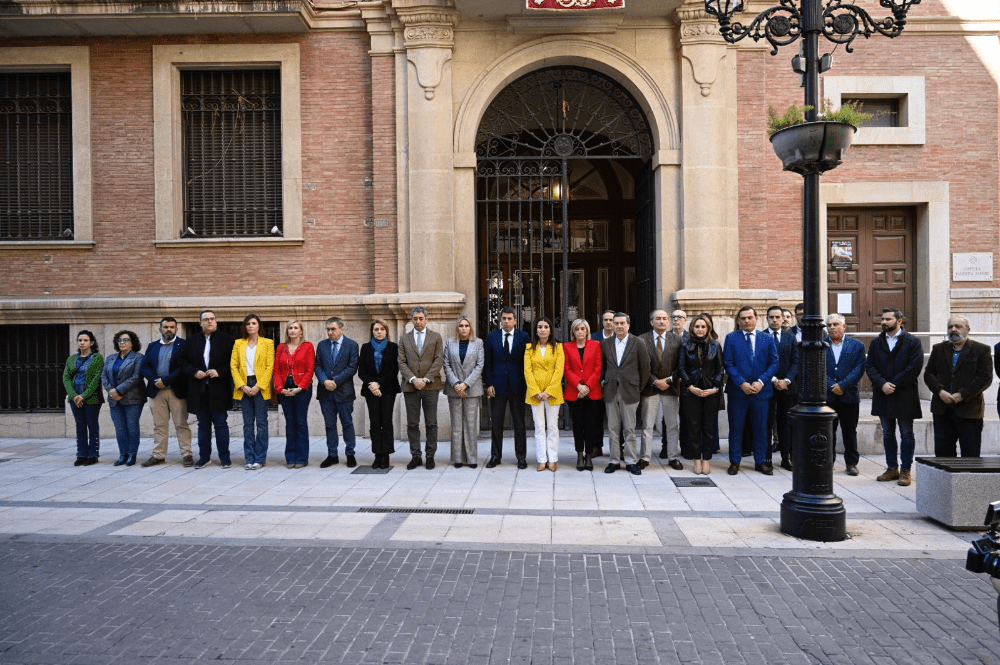 La presidenta de la Diputación, Marta Barrachina y miembros de la corporación provincial han guardado el minuto de silencio en señal de duelo junto al presidente de la Generalitat, Carlos Mazón, y los miembros del Consell tras haber celebrado el pleno en el Palacio Provincial de la Diputación Provincial.