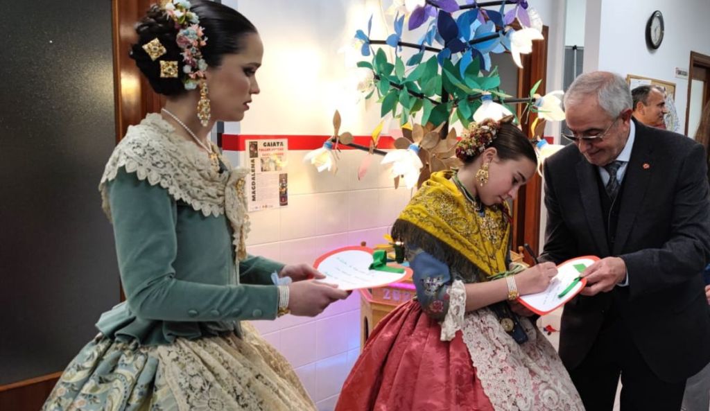 Las Reinas de las Fiestas de la Magdalena, Lourdes Climent y Vega Torrejón, han visitado la sede de Cáritas Diocesana de Segorbe-Castellón, donde han podido contemplar la gaiata confeccionada por el Taller de Jóvenes San Lorenzo y donde el director de la entidad, Francisco Mir, les ha agradecido su presencia, porque significa un reconocimiento a la labor social que realiza la entidad.