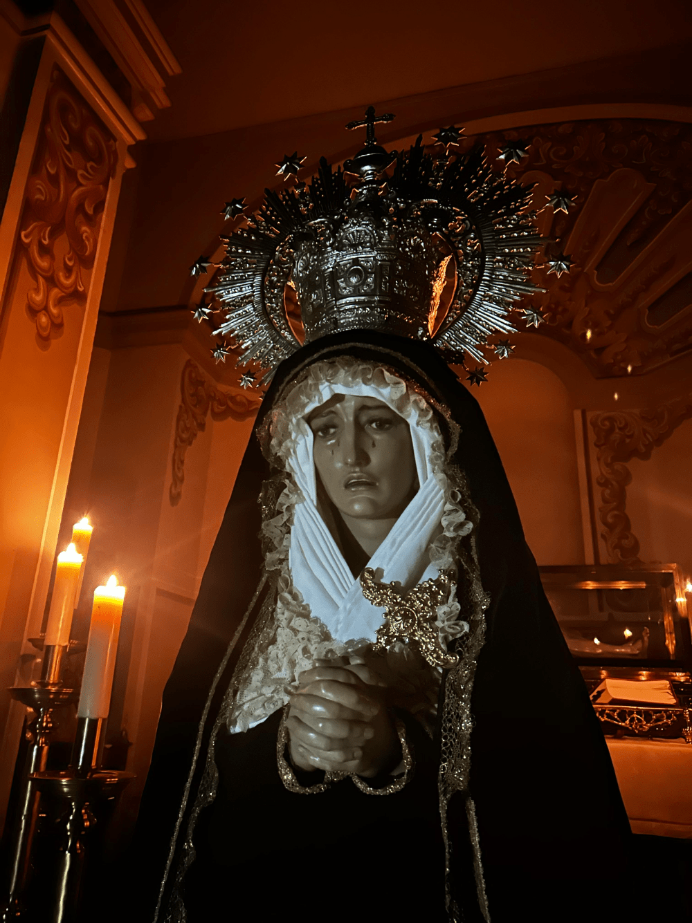 La Virgen de los Dolores de la Cofradía de la Sangre será venerada esta tarde, vestida como nunca se la ha visto