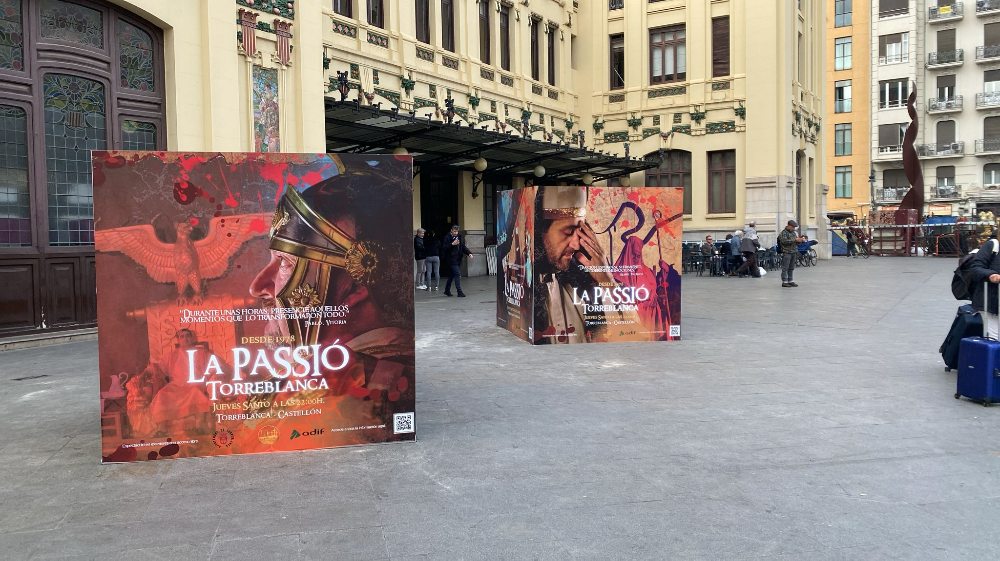 Esto sin contar con la intensa promoción en la que ha trabajado este año el equipo de Gobierno, que ha introducido como novedad los dos cubos promocionales de la Passió aprovechando que diariamente pasan por allí miles de personas. Es una de las iniciativas impulsadas por el equipo de Gobierno, que se ha aliado con Adif para multiplicar la repercusión de un evento que ya ha alcanzado una importante notoriedad más allá de la provincia de Castellón.