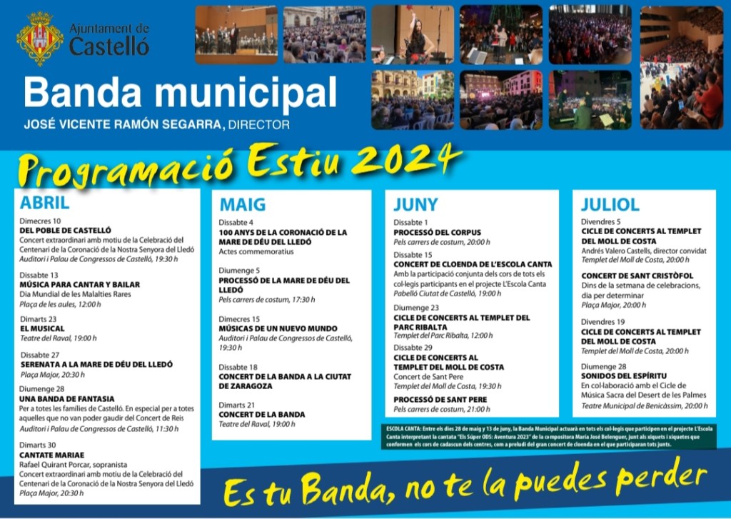 Se ha confeccionado un plan de conciertos trimestral y recientemente se ha hecho pública la amplia y excelente programación para este verano.