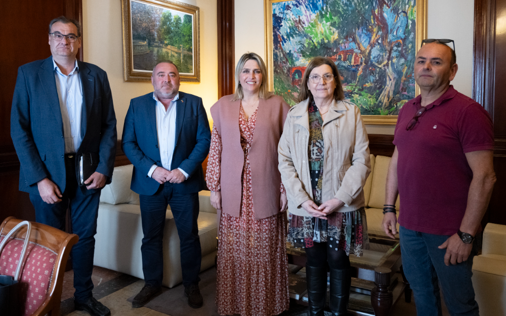 La presidenta Marta Barrachina, junto al diputado de Promoción Económica, Vicente Pallarés, ha recibido al vicepresidente de Confecomerç CV, Mauro Gómez; al presidente de Confecomerç Castellón, Juan Rodolfo Adsuara, y la secretaria general, Tere Esteve. Durante el encuentro se ha analizado la situación del pequeño comercio y se han marcado el objetivo de explorar líneas de colaboración y poder trabajar de manera conjunta por el futuro del pequeño comercio de la provincia. El apoyo a la digitalización, la formación y la sostenibilidad son algunas de esas líneas de colaboración a explorar.