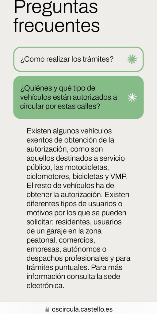El concejal socialista se pregunta si la alcaldesa del PP “se ha leído sus propias normas, recogidas en la página web https://cscircula.castello.es/, donde se deja claro que ‘el acceso al núcleo histórico está permitido para vehículos destinados a servicio público, motocicletas, ciclomotores, bicicletas y VMP, pero que deja claro que “el resto ha de obtener la autorización’.