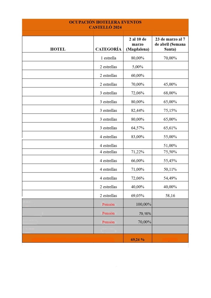 La alcaldesa de Castelló, tal y como quedó recogido en una nota de prensa que emitió el ayuntamiento el pasado 11 de marzo, dijo de manera textual que ‘respecto a la ocupación hotelera, en algunos casos, el porcentaje durante toda la semana ha estado rozando el 95% y el 100% el fin de semana, y sabemos que durante el fin de semana los hoteles de Castellón han estado llenos’.