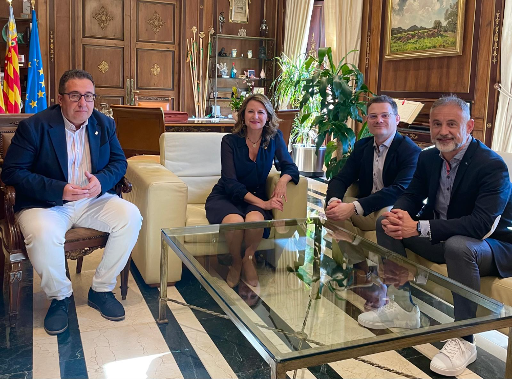 La alcaldesa de Castellón, Begoña Carrasco, junto con el concejal de Modernización, Paco Cabañero, ha recibido esta mañana al presidente de Xarxatec, José Bort y a su gerente, Carlos Jaime, como organizadores del “Hackathon Castellón”.