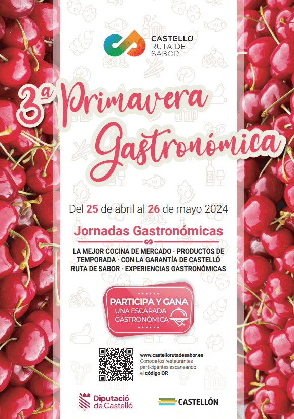 La primavera llega a Castellón y con ella la celebración por tercer año consecutivo de las Jornadas Gastronómicas, en las que los restaurantes y gastrobares que ostentan la marca Castelló Ruta de Sabor vuelven a dar la bienvenida a la estación, ofreciendo una 3ª edición de las jornadas gastronómicas centradas en la cocina de mercado y los productos de temporada. Desde el 25 de abril al 26 de mayo, los restaurantes y gastrobares que forman parte de la marca de turismo mostrarán su creatividad culinaria al ofrecer sus versiones más frescas y deliciosas de los sabores de la primavera, presentando así sus nuevos menús bajo el nombre de Castelló Ruta de Sabor.