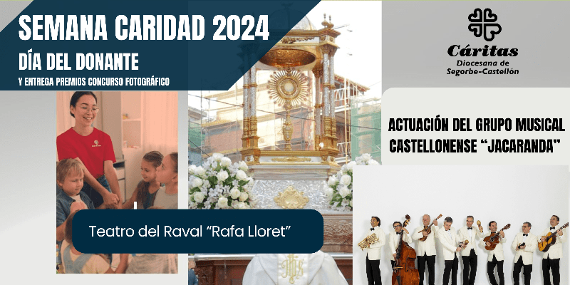 Cáritas Diocesana de Segorbe-Castellón celebrará, en el marco de la Semana de la Caridad, el Día del Donante, en agradecimiento a todas esas personas implicadas y comprometidas con un estilo de vida, que, con sus donaciones periódicas o puntuales, o dedicando parte de su tiempo, ayudan a transformar nuestro modelo de convivencia haciéndolo más justo, solidario, fraterno.