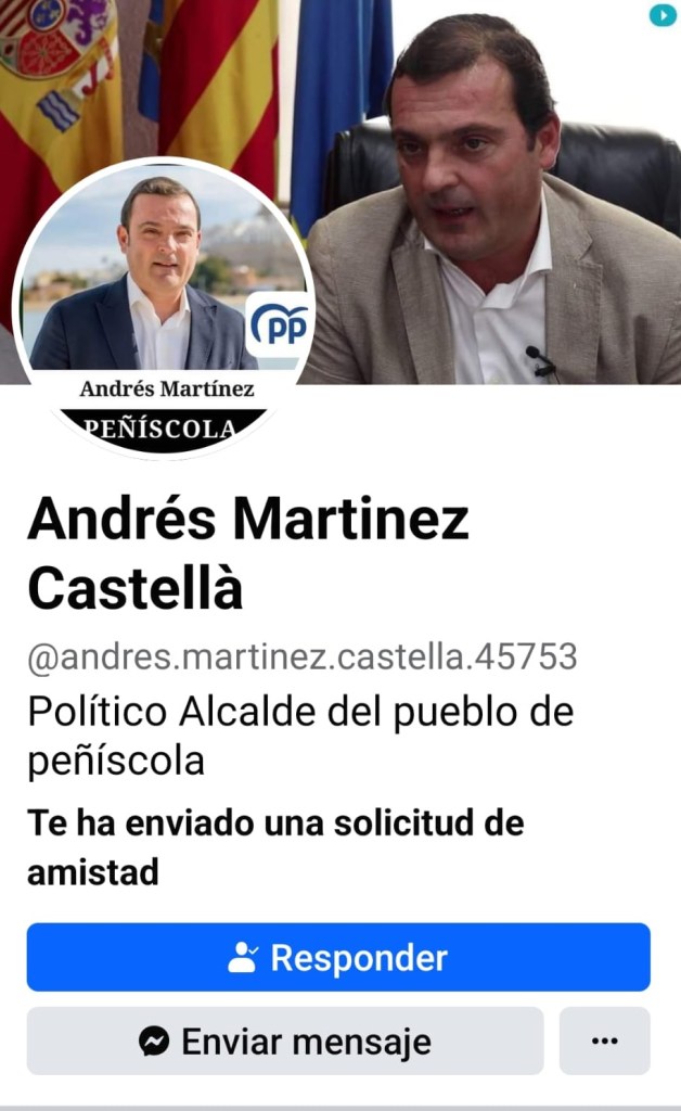 Tal y como ha manifestado Folgado, “el alcalde de Peñíscola ya ha alertado en su perfil social del fake que está enviando solicitudes de amistad a miles de ciudadanos con el deseo de advertir que no se trata de una cuenta real, sino una suplantación de identidad”.