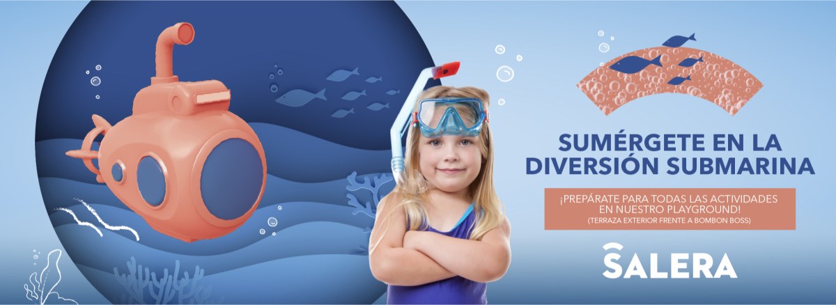 Todos los sábados del 25 de mayo al 29 de junio, pásate por nuestro submarino, ubicado en el exterior frente a la terraza de Bombom Boss y disfruta de todas las actividades infantiles que hemos preparado