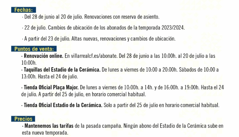 Categorías Deportes Nacidos de la tierra – Campaña de abonos de la temporada 24/25 del Villarreal C.F. El plazo de renovación online finaliza el sábado 20 de julio a las 10.00h Post author De Redacción WOWCastellon Post date 29 de junio de 2024 No hay comentarios en Nacidos de la tierra – Campaña de abonos de la temporada 24/25 del Villarreal C.F. Diiptico-CampanTHa-AbonosDescarga Comparte esto: Compartir en X (Se abre en una ventana nueva) X Compartir en Facebook (Se abre en una ventana nueva) Facebook Me gusta Cargando... Relacionado Etiquetas Villarreal CF ← Peñíscola celebra la procesión marítima en el día de San Pedro → La alcaldesa de Castellón, Begoña Carrasco, ha asistido a la procesión con motivo de la festividad de Sant Pere en la iglesia de San Pedro Apóstol del Grau. Deja un comentario Cancelar la respuesta Δ