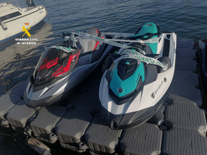 Dentro de la campaña que todos los años efectúa la Guardia Civil para el control de las embarcaciones de recreo y motos acuáticas en periodo estival, el pasado día 9 de julio del presente se efectuó el precinto de dos motos acuáticas de una empresa que las alquilaba por horas o fracción y que operaba de manera ilegal en la playa de “Les Amplaries” en la localidad de Oropesa de mar.