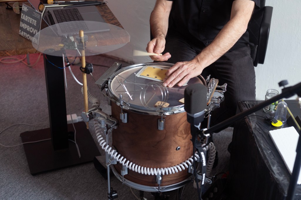 Además de idear el nuevo timbal, Jesús Gallardo tuvo la oportunidad de participar durante su estancia alemana en sesiones de música improvisada -algo que hace habitualamente con el Col·lectiu de Música Improvisada de Castelló (CIM.CS)-, poner música a una inauguración expositiva y también compartir jams con artistas a quienes no conocía.