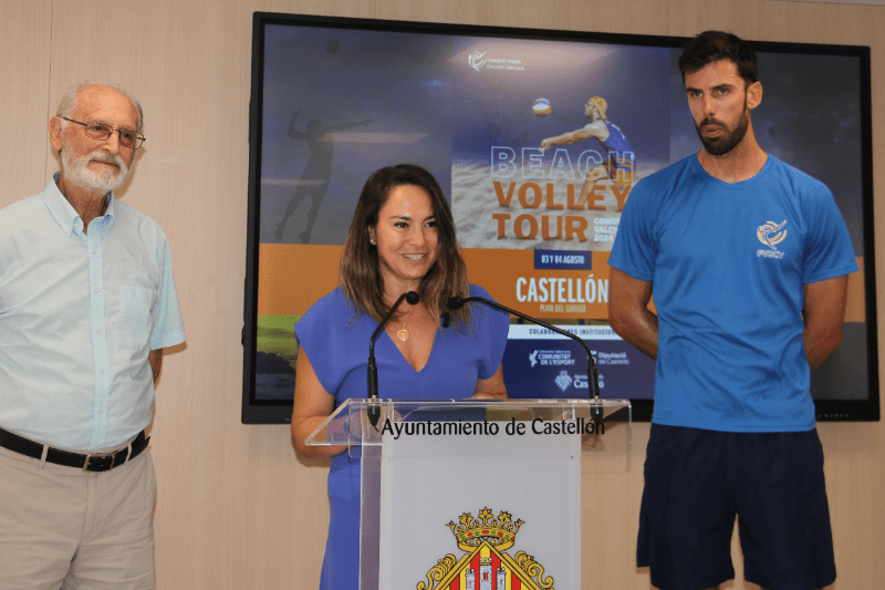 La concejala de Deportes en el Ayuntamiento de Castellón, Maica Hurtado, acompañada de Arturo Ruiz, Presidente de la Federación de Voleibol de la Comunidad Valenciana y Daniel Moreno, Responsable de vóley playa de la Comunidad Valenciana, ha presentado este evento deportivo que reunirá a más de 280 jugadores de la Comunitat Valenciana, que competirán en las inmediaciones de la playa del Gurugú.