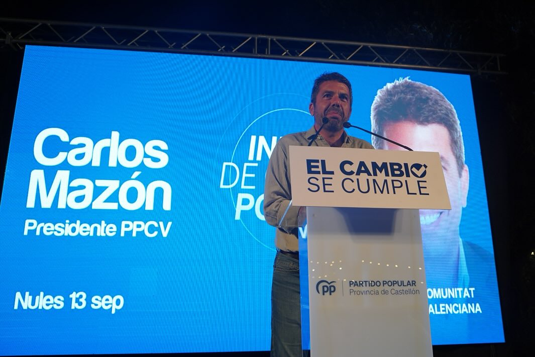 Mazón estuvo acompañado por Miguel Tellado, vicesecretario general del Partido Popular y portavoz del Grupo Parlamentario Popular en el Congreso de los Diputados, Juanfran Pérez Llorca, secretario general de PPCV y Síndic de GPP en Les Corts, los presidentes provinciales de la Comunitat, Marta Barrachina, Vicente Mompó Aledo y Toni Pérez, y el presidente local del partido en Nules, José Adsuara.