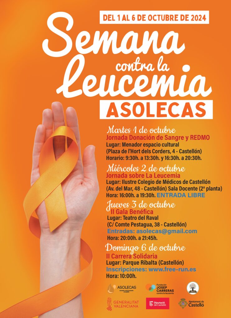 El miércoles 2 de octubre, a las cuatro de la tarde en el Colegio de Médicos de Castellón, se celebrará de forma gratuita y con entrada abierta, una Jornada sobre la Leucemia “aquí se dará a conocer aspectos tan importantes y todavía desconocidos para la sociedad como conocer las enfermedades onco-hematológicas, su diagnóstico y tratamiento, la forma en la que podemos donar, aptitudes y la situación actual de la investigación”, afirma la edil.